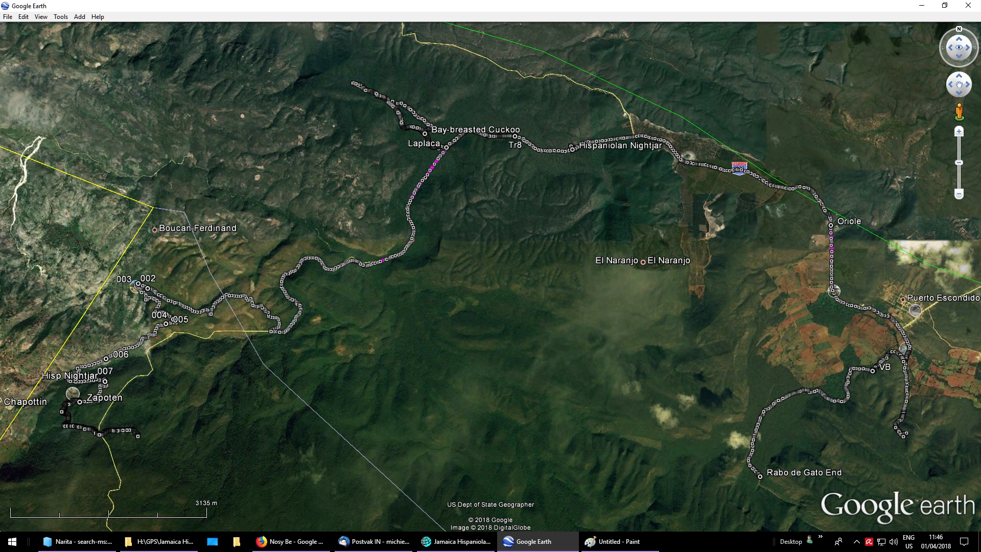 The Zapoten track is dealt with by a local high clearance 4WD vehicle and local guide for a full day and one needs to start at 4 am in the morning to get at Zapoten before sunrise for your best chances to see the La Selle’s Thrush and Bicknells Thrush. Just before Zapoten there is an area with pine trees that has the Hispaniolan Nightjar but again the birds did not respond by coming within view. The pine forest behind the Zapoten compound gave us nice views of the endemic Crossbill.