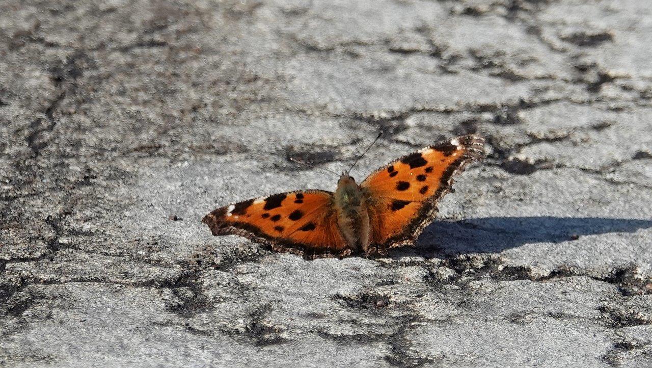 Apart from this Tortoiseshell, Comma Butterflies, Brimstones, Peacock's, Red Admirals etc. all the stuff that is wintering in Western Europe flying around in the freezing climate with no nectar around. This was probably due to a warm spell some time before I was there.