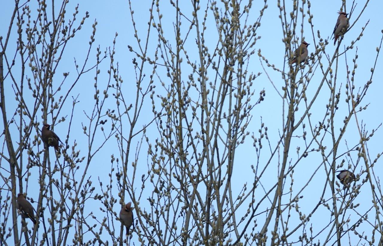 Finally passed by a small group of Waxwings. One of the birds I hoped to see. But they moved north soon after I took the first distant shot: